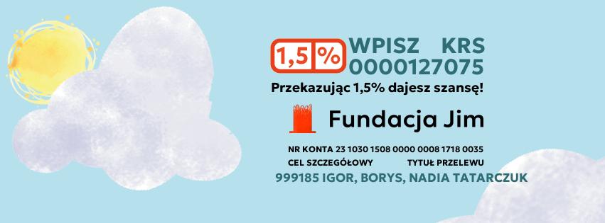 pamiętaj wpisać: #999185 Igor, Borys, Nadia Tatarczuk w tytule przelewu