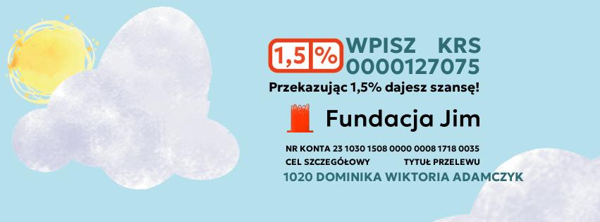 pamiętaj wpisać: #1020 Dominika Wiktoria Adamczyk w tytule przelewu